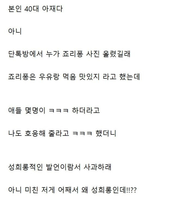 죠리퐁 & 우유 얘기 꺼냈다가 성희롱으로 몰린 아재
