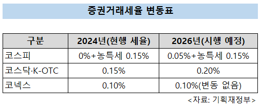 내년부터 코스피,코스닥 거래세율 인상