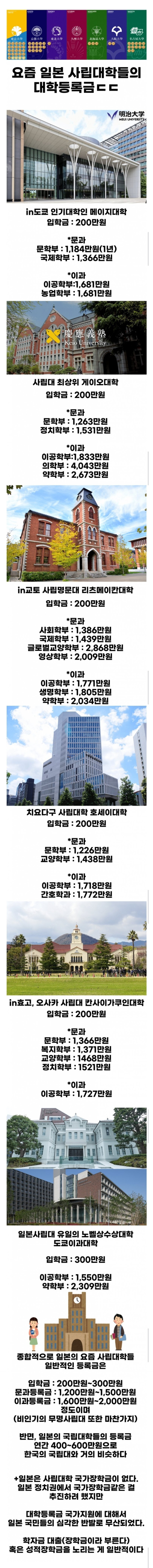 요즘 일본 사립대학교 등록금 수준