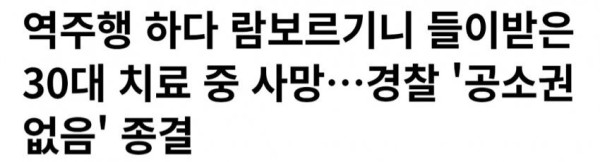 역주행 하다 람보르기니 들이받은 30대 치료 중 사망…경찰 '공소권 없음' 종결 - 노컷뉴스