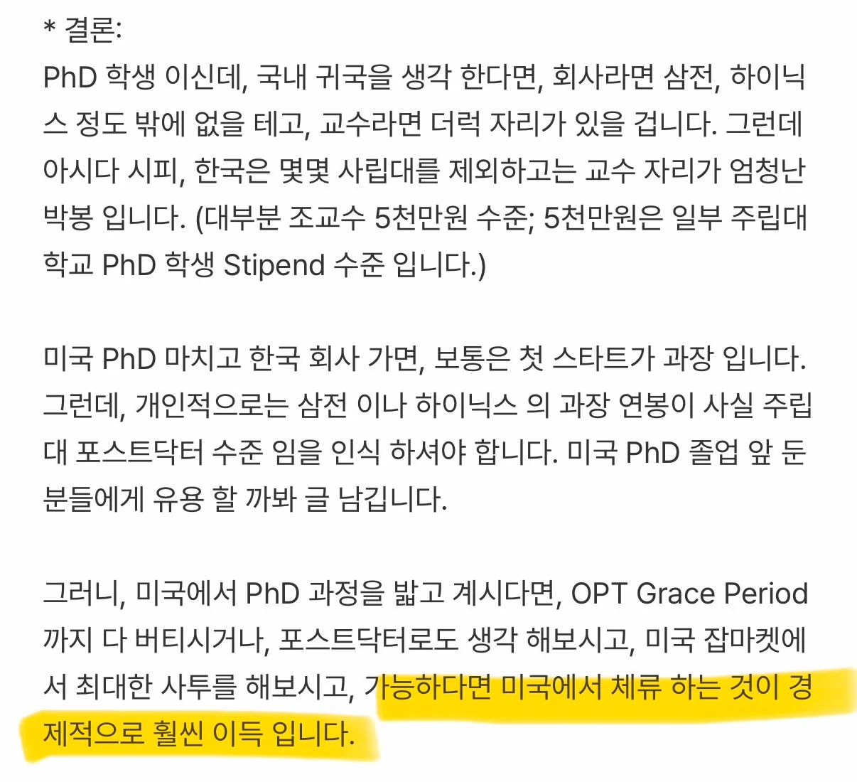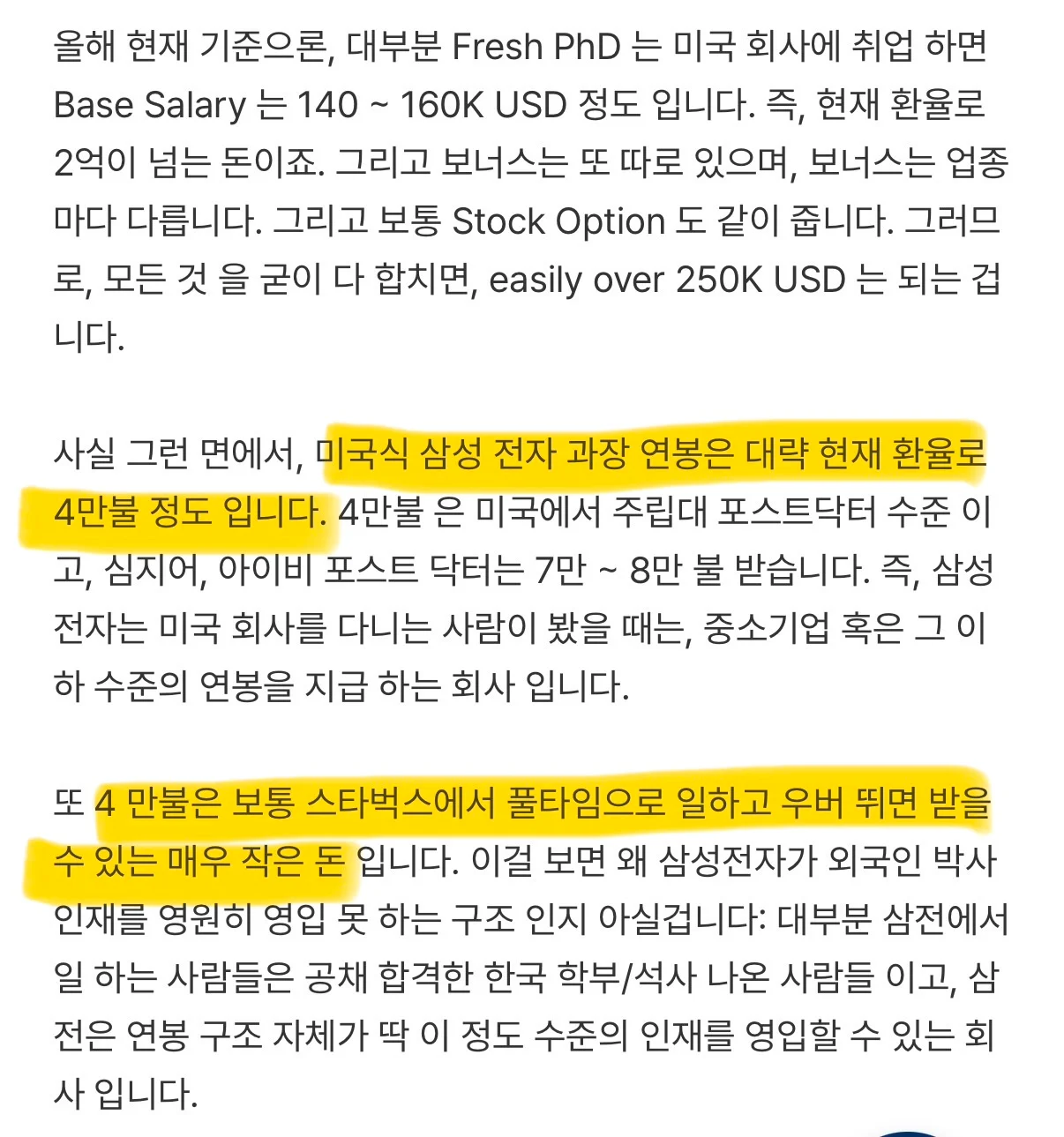 미국의 압도적인 연봉 + 미친 노후보장 정책 때문에 해외유학파들을 국내로 불러들여오기가 쉽지 않다고 함.
