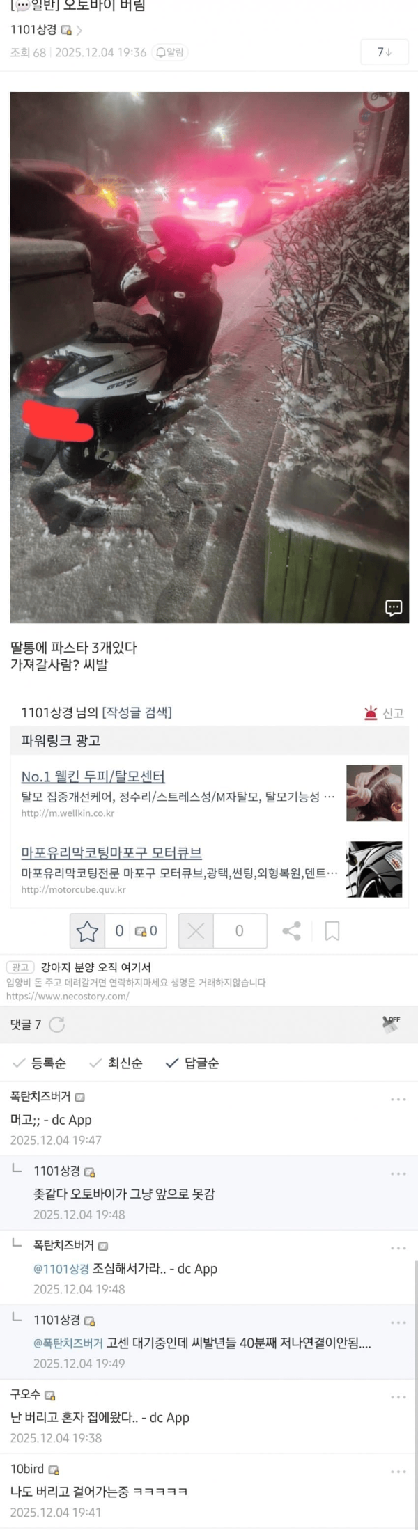 오늘자 폭설.. 배달 갤러리 근황