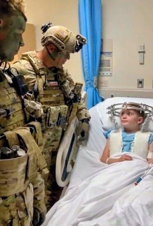 아이는 "군인들을 보고 싶어요, 진짜 영웅을 보고 싶어요" 라고 말했음. 마침 그 심리상담가에게는 네이비 씰에서 복무중인 오빠가 있었고 다음날 병원에서 가장 가까운 거리에 있던 씰 팀의, 48시간 동안 훈련하고 있던 팀장은 전화를 받고 가겠다고 즉시 승낙함. 위장과 장비들을 벗지도 않은 완전무장 상태로 병원에 방문한 대원들은 진짜 영웅이 왔다고 눈이 휘둥그레진 아이에게 말함. "안녕, 코디. 여기 진짜 투사가 있다고 들었어." "이건 우리 팀의 패치야. 우리가 아는 가장 강한 사람들에게만 주는 거야. 그리고 넌, 우리 중 누구보다도 강하잖아?" 그렇게 세계 최고의 특수부대원들은, 소년의 손에 네이비 씰의 패치를 용기와 함께 쥐어주었음."우린 네이비 씰이야. 여기 진정한 투사가 있다고 들었어"
