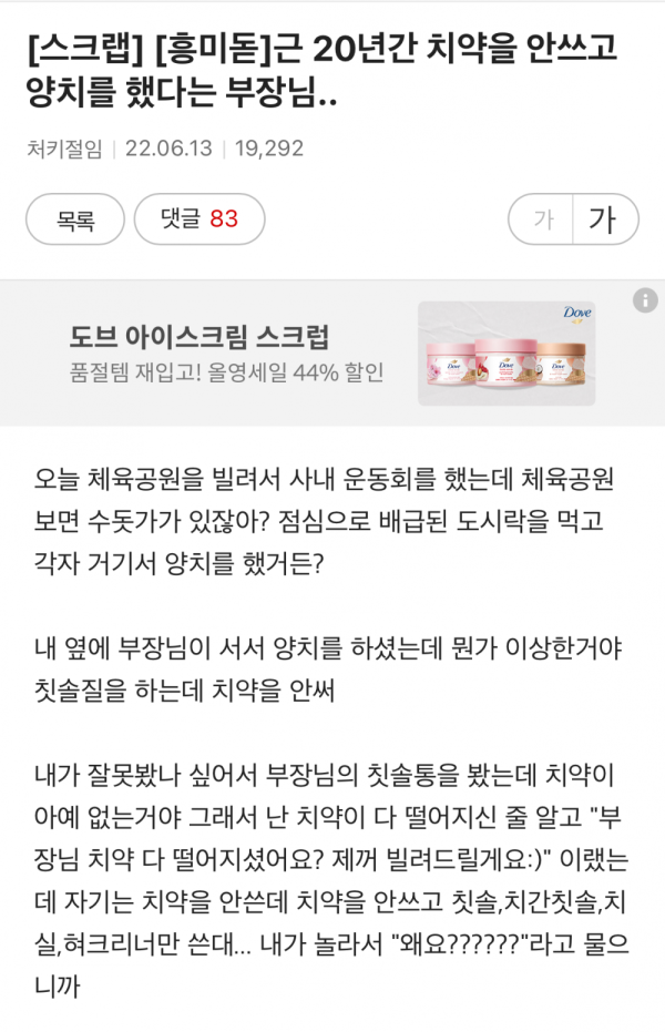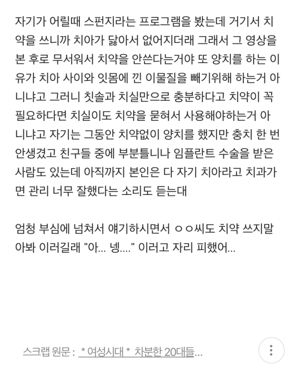 근 20년 간 치약을 안쓰고 양치했다는 부장님