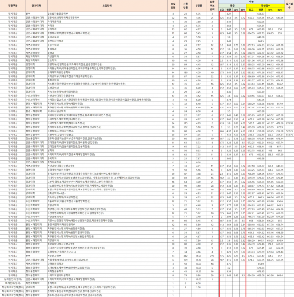 정시입결 기준 전반적으로 3중~후에 포진되어있음. 몇년 전만해도 2등급대도 많았던 대학