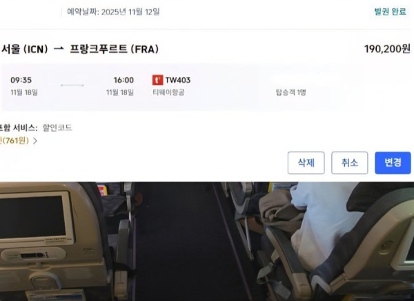 인천에서 독일 직항 19만원 편도 비행기의 기내식 수준