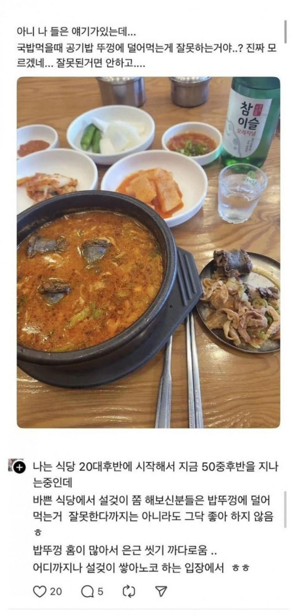 생각도 못한 국밥집 공기밥 뚜껑 논란