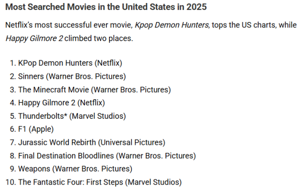 이하 미국에서 가장 많이 검색된 분야별 순위들임