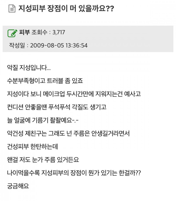 지성피부 장점이 머 있을까요?