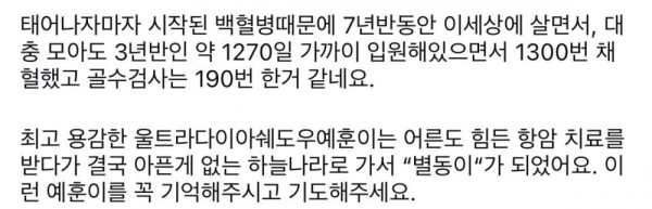 아기때부터 백혈병에 걸렸던 8살 예훈이 근황...