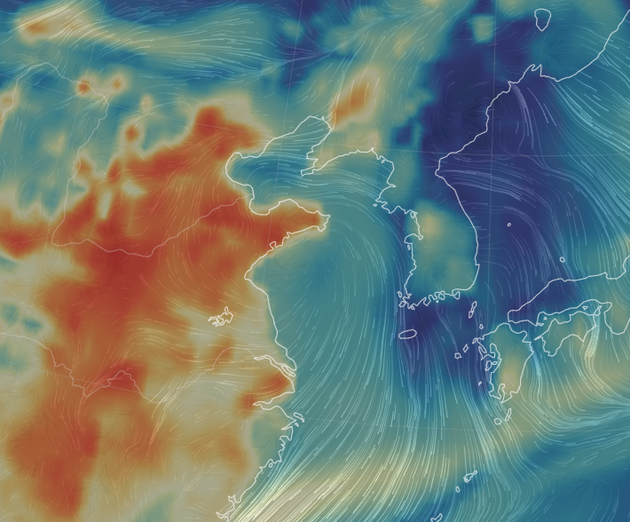 시베리아 고기압 및 역전층 현상으로 중국기류가 정체되어 미세먼지가 확산되지 않고 중국 내에 갇혀서 못 움직이는 중
