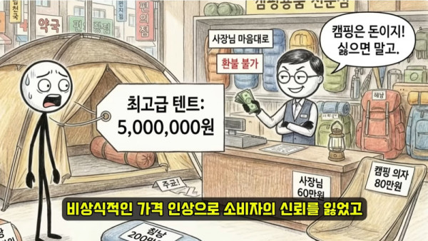 댓글은 캠핑장 바가지가 문제라는 의견이 주류