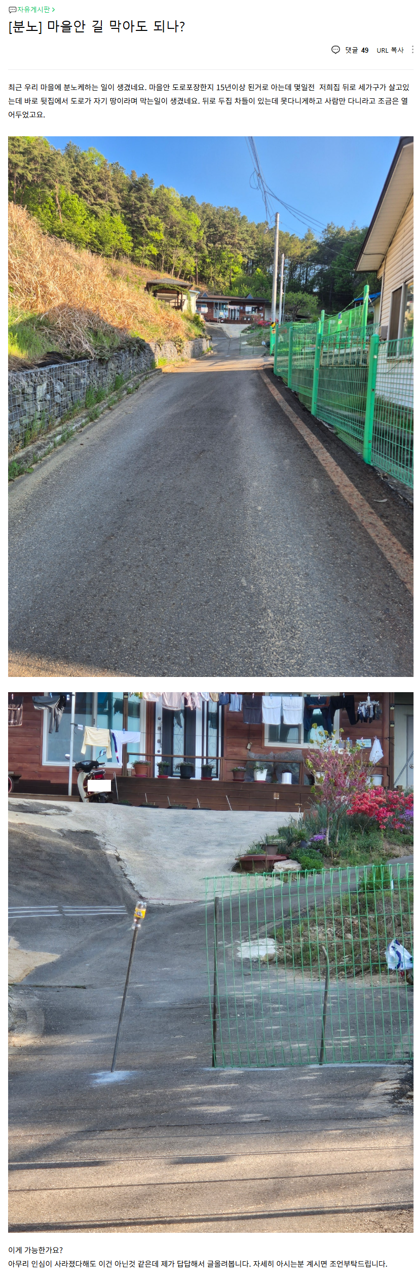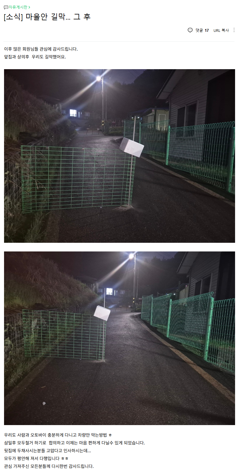 7일 후 글쓴이도 길막 당한 두 집을 도와줄려고 길막 앞 길막을 시전