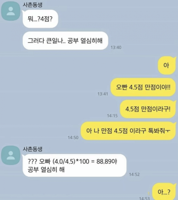 시험 점수 평균 95점 받은 사촌 여동생의 일침