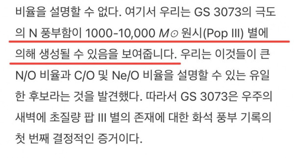 우주 탄생이후 최초의 거대 원시별의 존재의