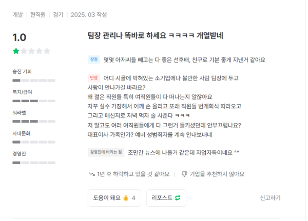 잡플래닛으로 영포티 내부고발하는 여직원들