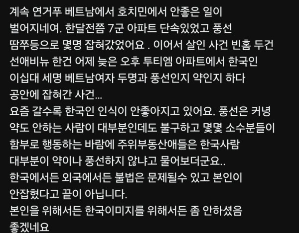 베트남 여성2명과 한국인 남성3명이 마약풍선 빨다가 체포