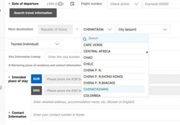Republic of China(TAIWAN)으로 전자입국신고서 만들어 줬는데