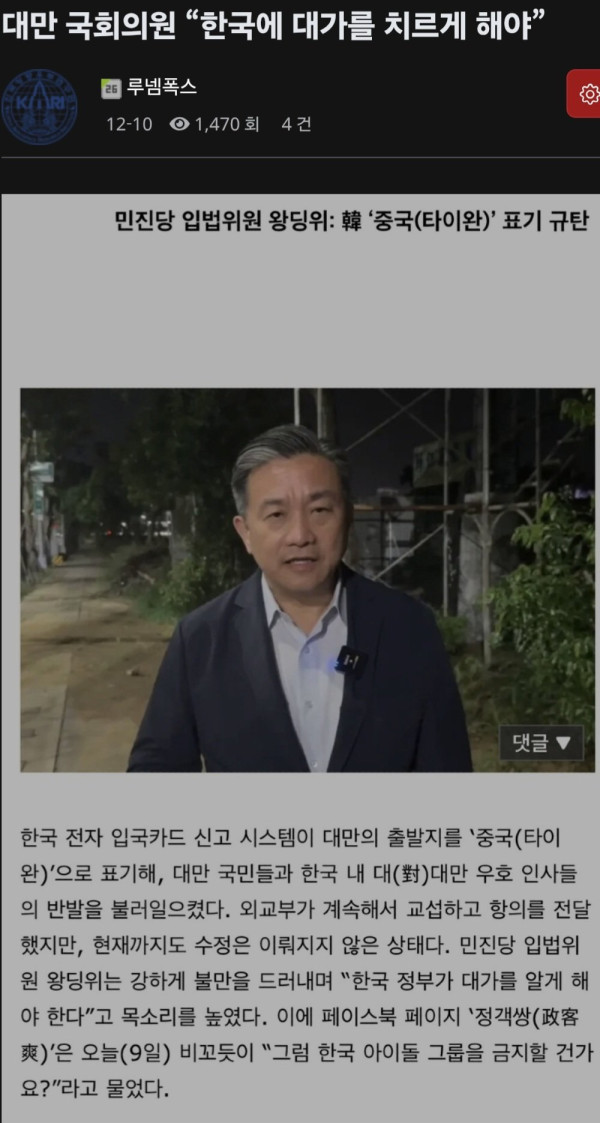 대만이 전자입국신고서 가지고 태클 거는 게 어이없는 이유