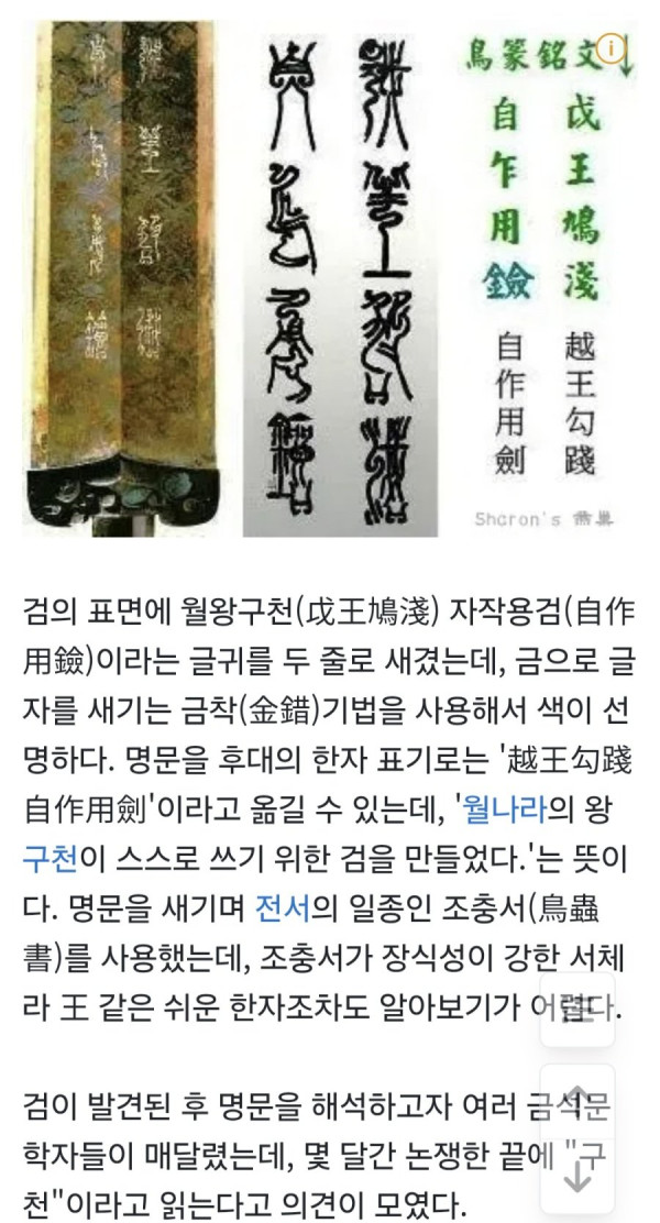 중국 춘추시대 월나라 왕 구천이 사용한 검