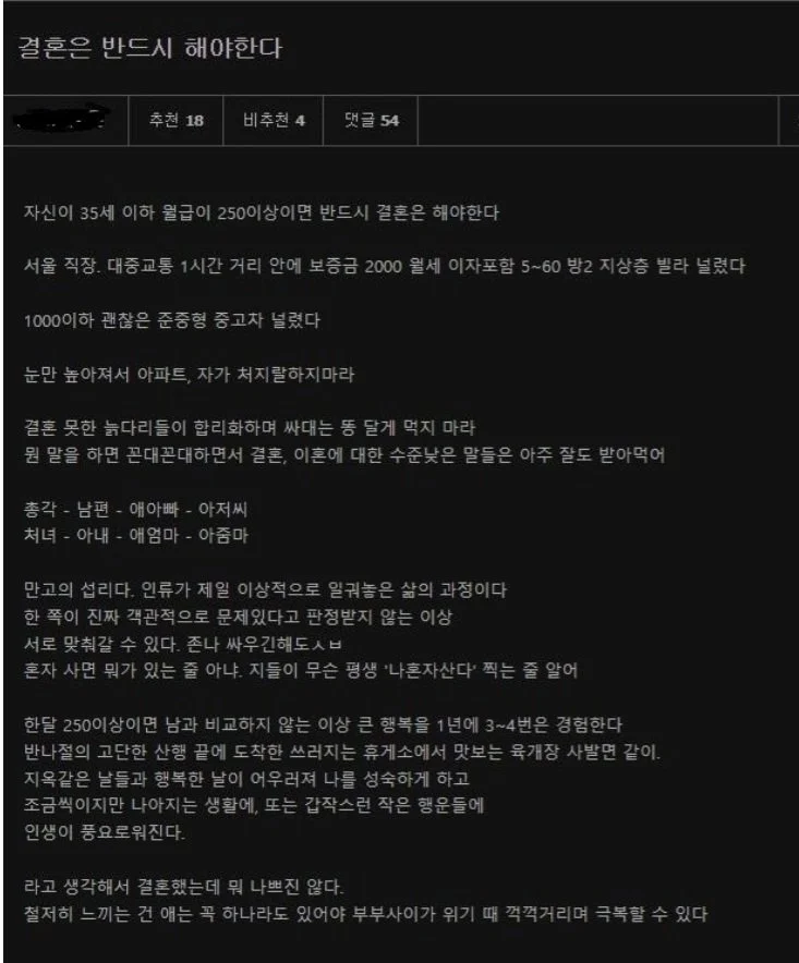 월급 250만원 이상이면 반드시 결혼을 해야한다