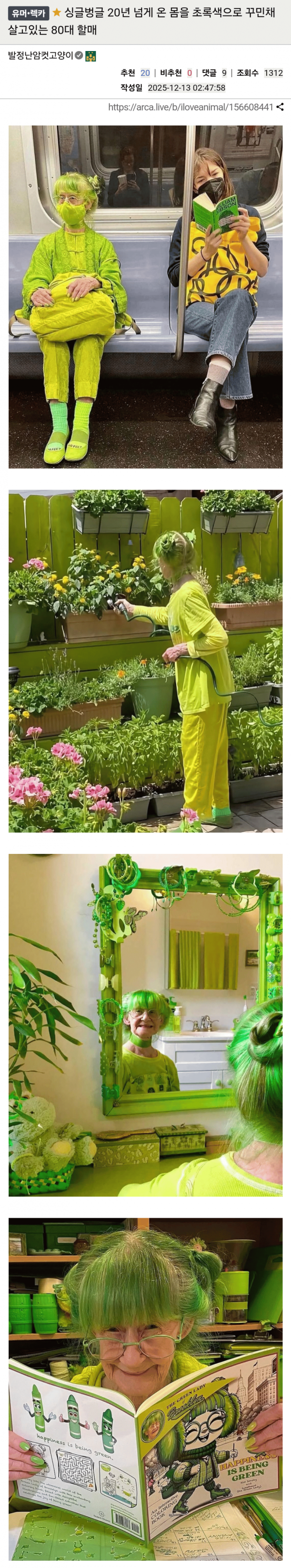 20년 넘게 온 몸을 초록색으로 꾸민채 살고있는 80대 할매