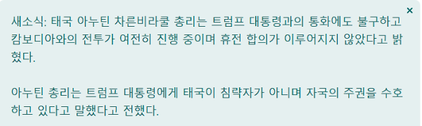 트럼프가 발표한 태국.캄보디아의 휴전은 합의한 적 없다