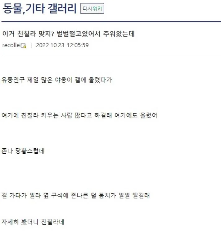 훌쩍훌쩍 길가다 친칠라 주운 디시인