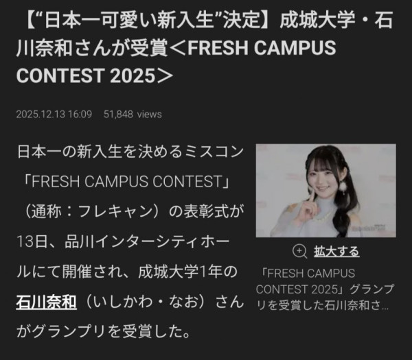 최우수상 도쿄 세타가야구 소재 세이조 대학 재학