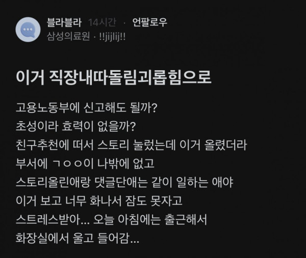 요즘 간호사 따돌림 수준 ㄷㄷ