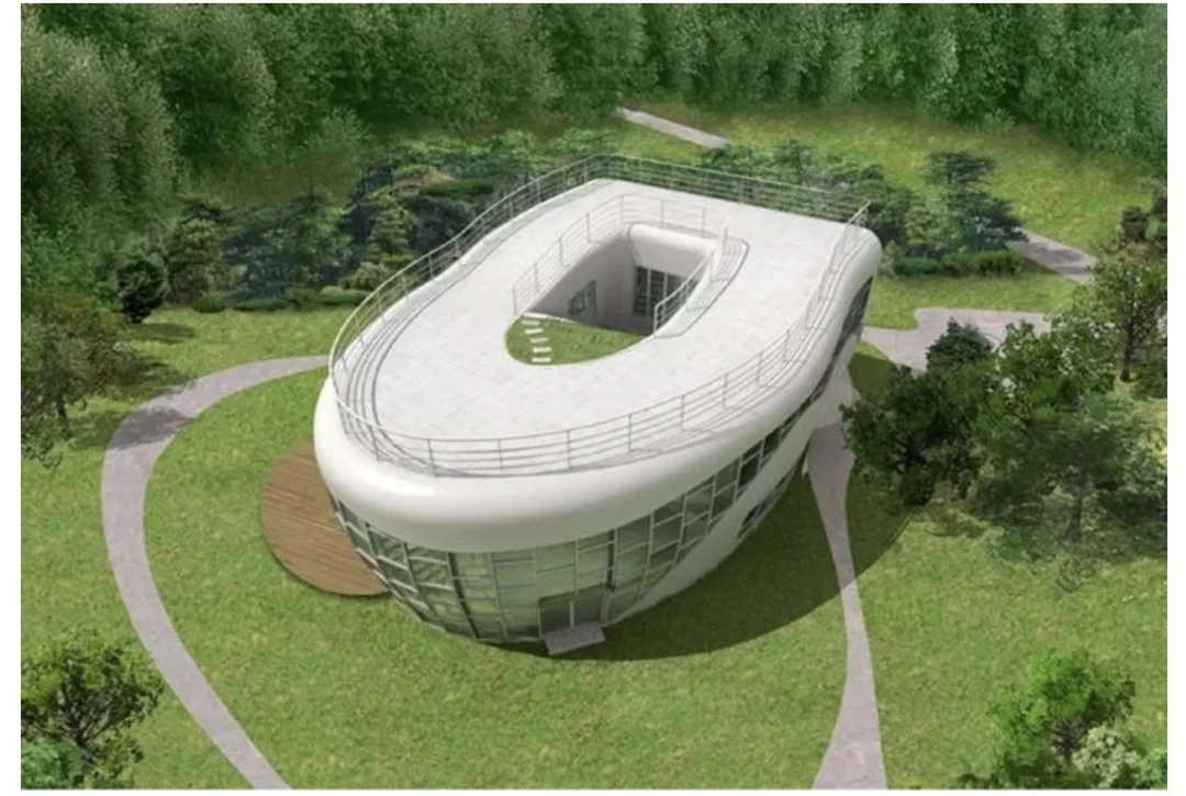 살던 집을 허물고 변기 모양으로 집을 지었음