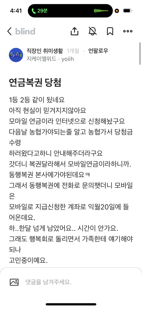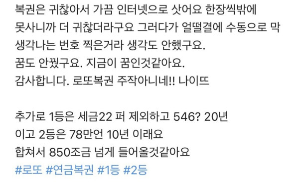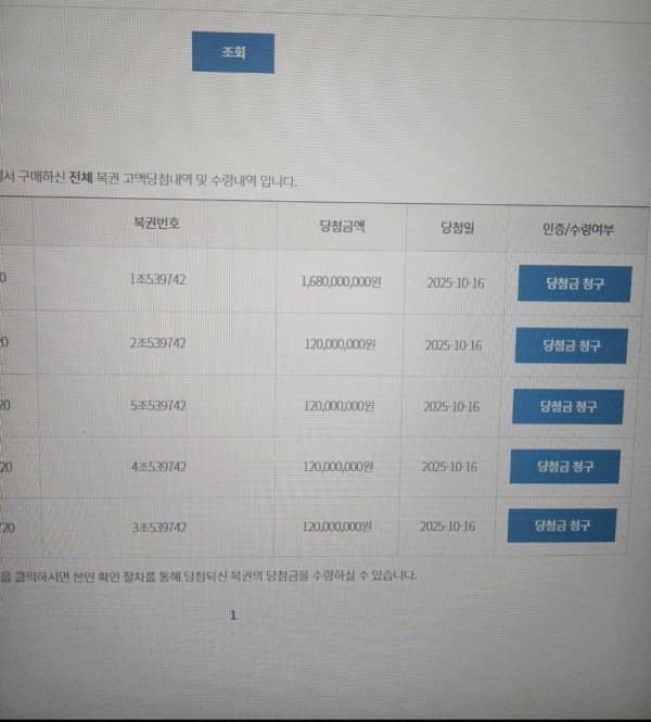 연금복권 1~2등 당첨자 폰 알림창 상태