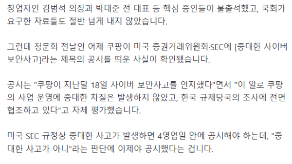 쿠팡...미국엔 "중대사고 아냐" 긴급 공시