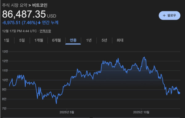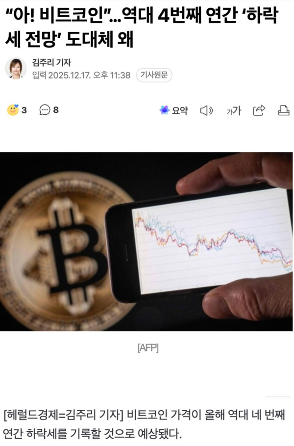 비트코인, 역대 4번째 연간 ‘하락세 전망’