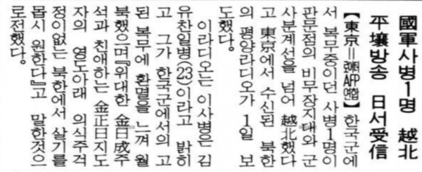 한국에서의 고된 군 복무에 환멸을 느껴 월북했으며