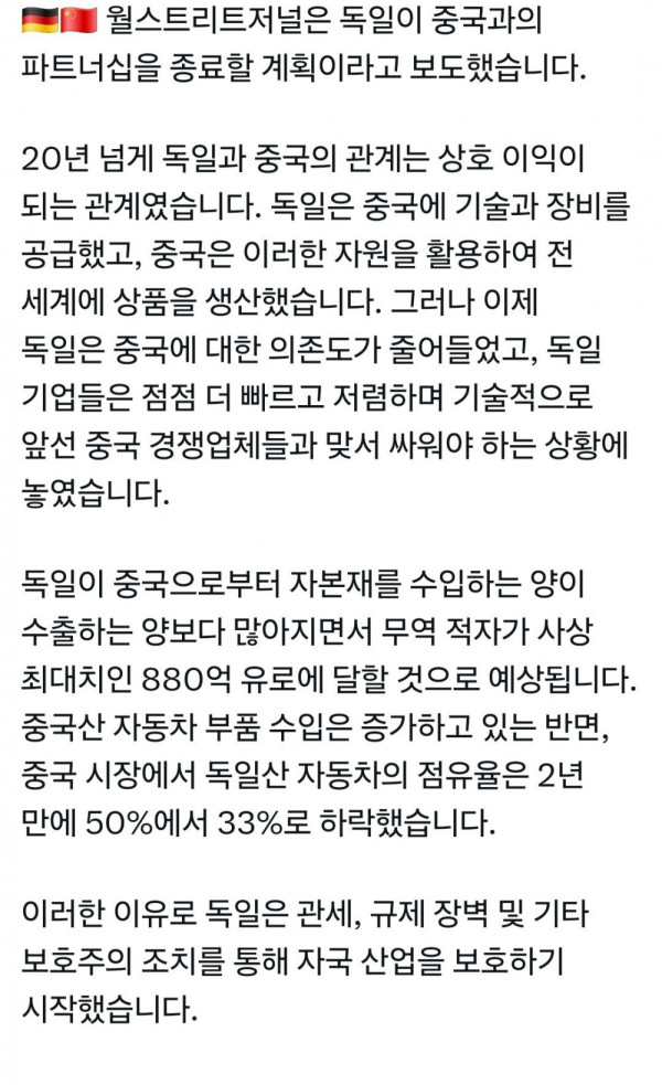 ㅊㅈ: https://www.wsj.com/world/europe/why-germany-wants-a-divorce-with-china-0d59fb81(유료기사)