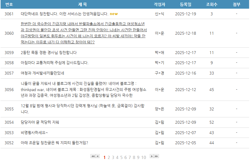 화성 동탄경찰서 칭찬합시다 게시판 근황