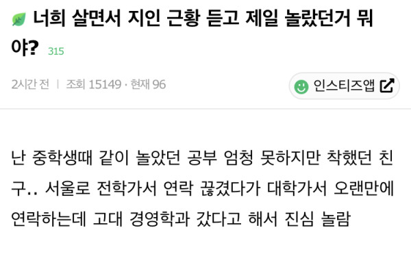너희 살면서 지인 근황 듣고 제일 놀랐던 거 뭐야?