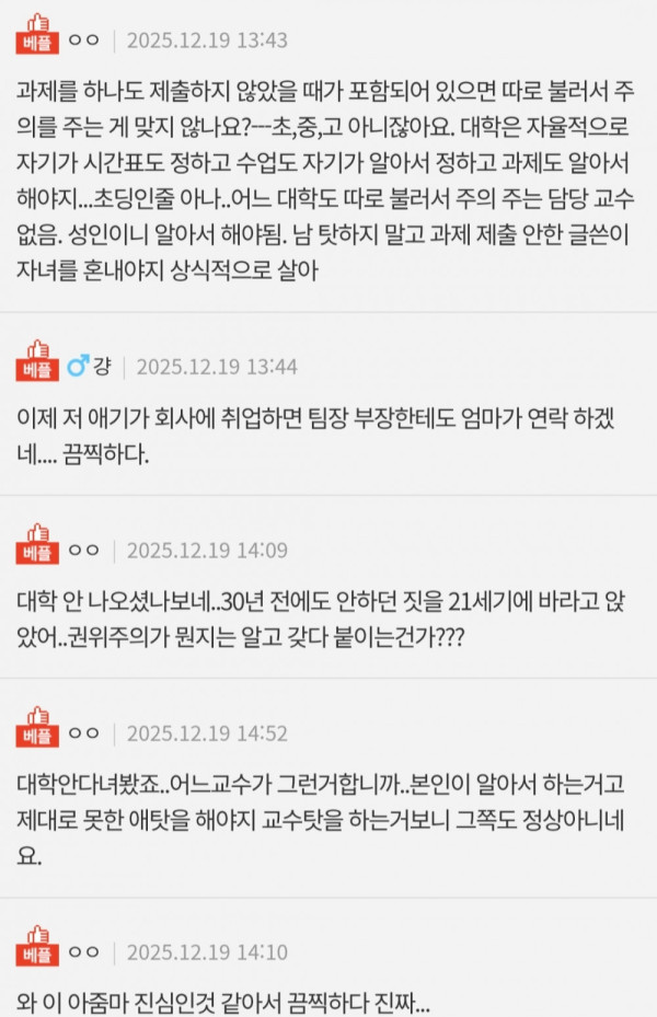 요즘 대학 교수는 학생관리를 전혀 안하나요?