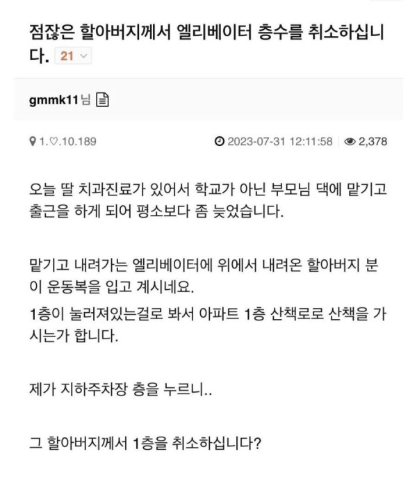 엘레베이터 탄 할아버지가 층수 버튼 취소한 이유