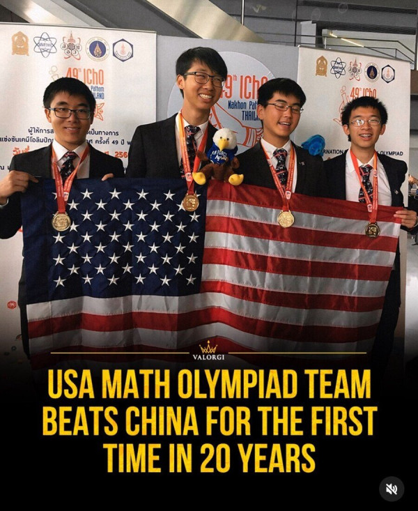 미국이 최초로 수학 올림피아드에서 중국을 이기고 우승