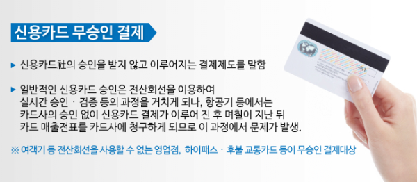 후불교통카드의 경우 무승인 거래가 이루어지므로