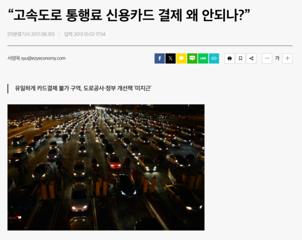 때문에 요금소에서 일반 신용카드와 체크카드를