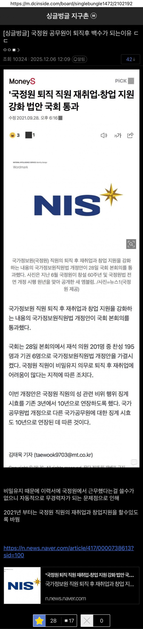 국정원 공무원이 퇴직후 백수가 되는이유 ㄷㄷ