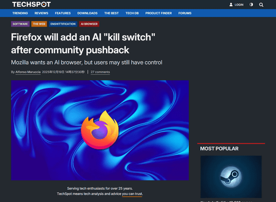 파이어폭스가 AI 기능 끄는 'AI 킬 스위치'를 추가하기로 함