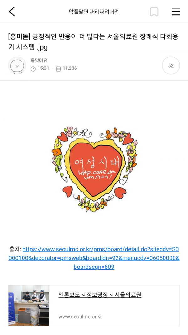 반응 좋다는 서울의료원 장례식 다회용기 시스템