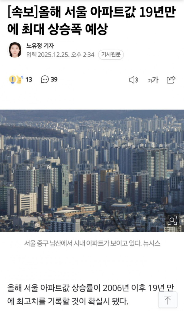 올해 서울 아파트값 19년만에 최대 상승폭 예상