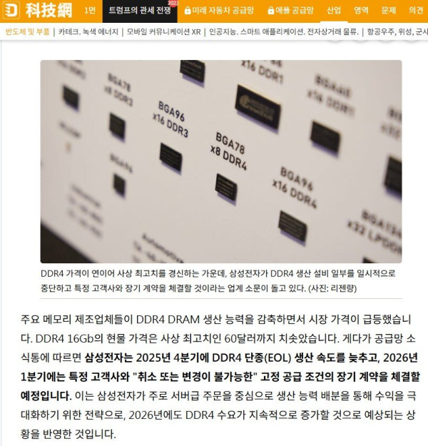 DDR4 단종 직전이었던 삼성 근황
