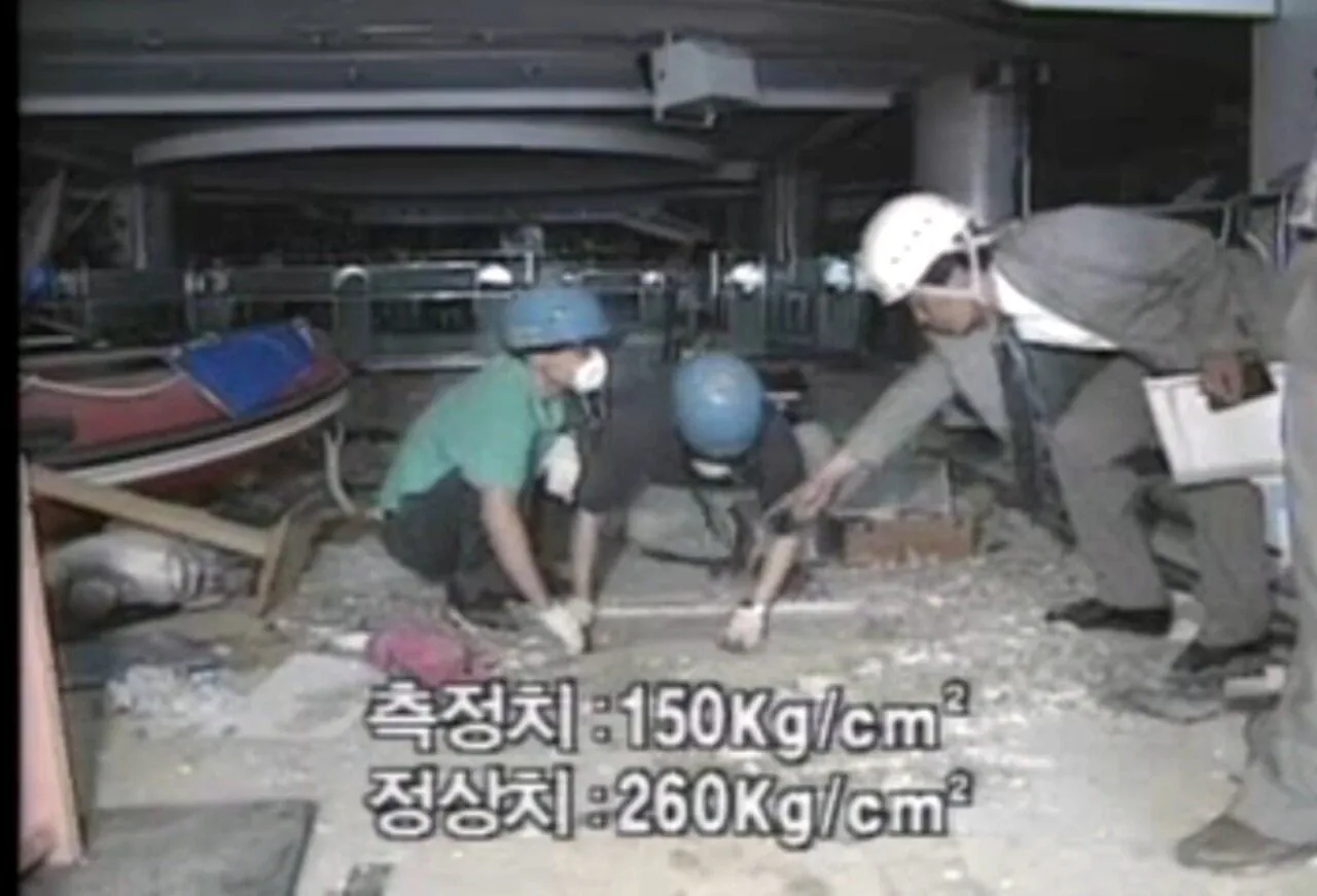 아래는 상품백화점 A동이 붕괴된 후 붕괴되지 않은 B동 내부 모습