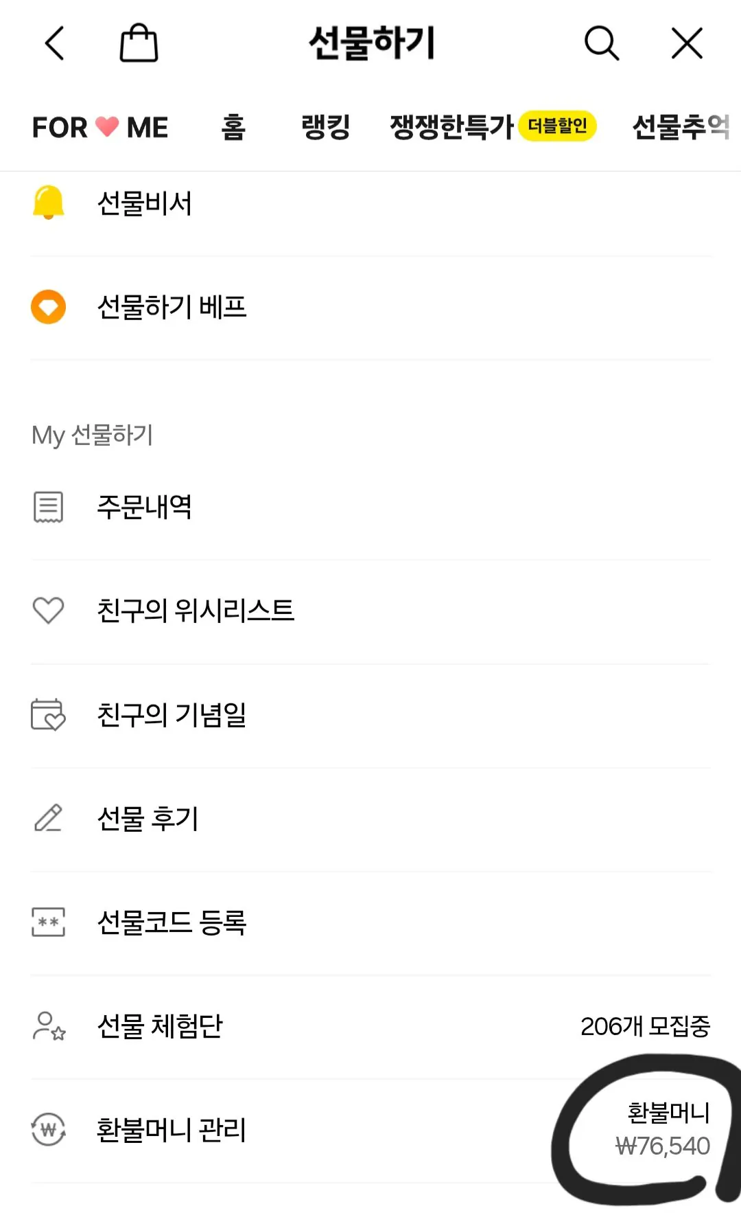 카카오톡 선물함에서 꽁돈 찾는 방법